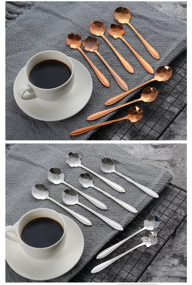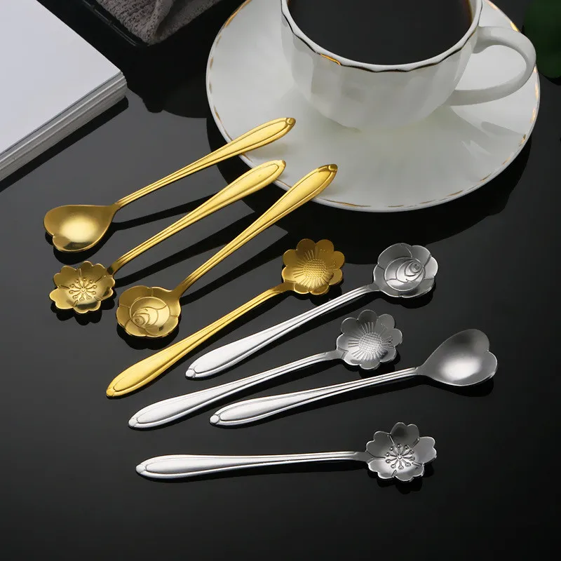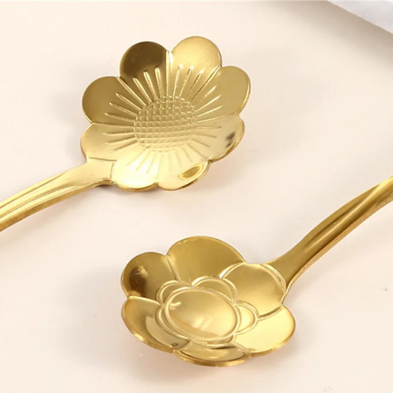 8Pcs Flower Spoon Set Small Teaspoon Coffee Spoon Cute Ice Cream Dessert Spoon Silver Gold Stainless Steel Spoon For Coffee Tea
