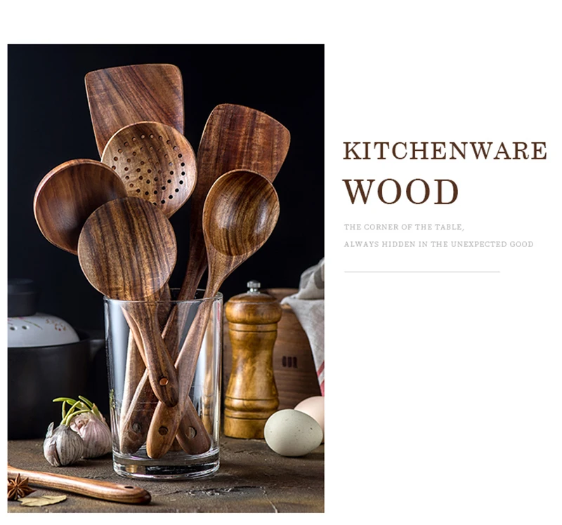 Kit de colheres em madeira, ideal para cozinhar sem riscar panelas e trazer um toque rústico e elegante ao dia a dia.
