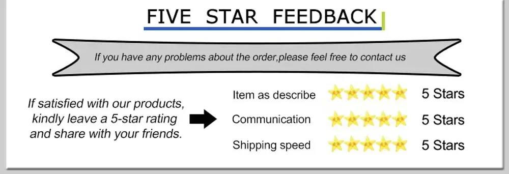 Sua confirmação será muito apreciada após receber os itens.Depois de receber o produto, espero que você possa nos deixar um feedback positivo (4 ou 5 estrelas).-ANTES de deixar o feedback negativo.POR FAVOR entre em contato conosco primeiro e podemos ajudá-lo a resolver o problema.