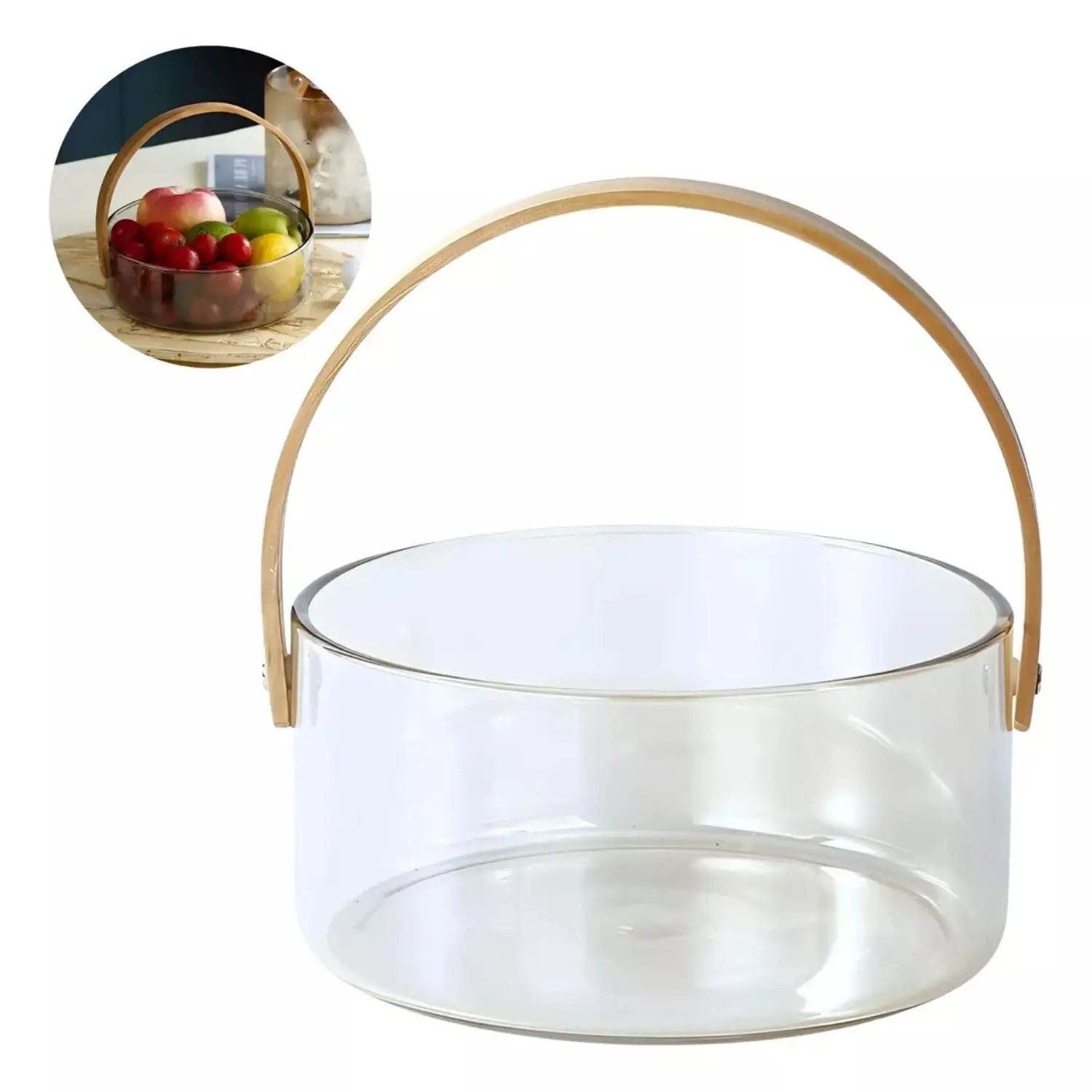 Multifuncionalidade: Pode ser usado como balde de gelo, cesta de frutas ou porta-utensílios, fruteira e saladeira, ideal para festas e eventos.Design Robusto e Elegante: Fabricado em vidro com alça de madeira de bambu, inclui alças fixadas por rebites reforçados, garantindo durabilidade e praticidade.Fácil de Usar e Transportar: O design de alça humanizado facilita o manuseio, evitando machucados e proporcionando maior comodidade no transporte.Versatilidade para Todas as Ocasiões: Perfeito para bares, churrascos, restaurantes, piqueniques e celebrações, mantém bebidas como vinho, cerveja e champanhe na temperatura ideal.